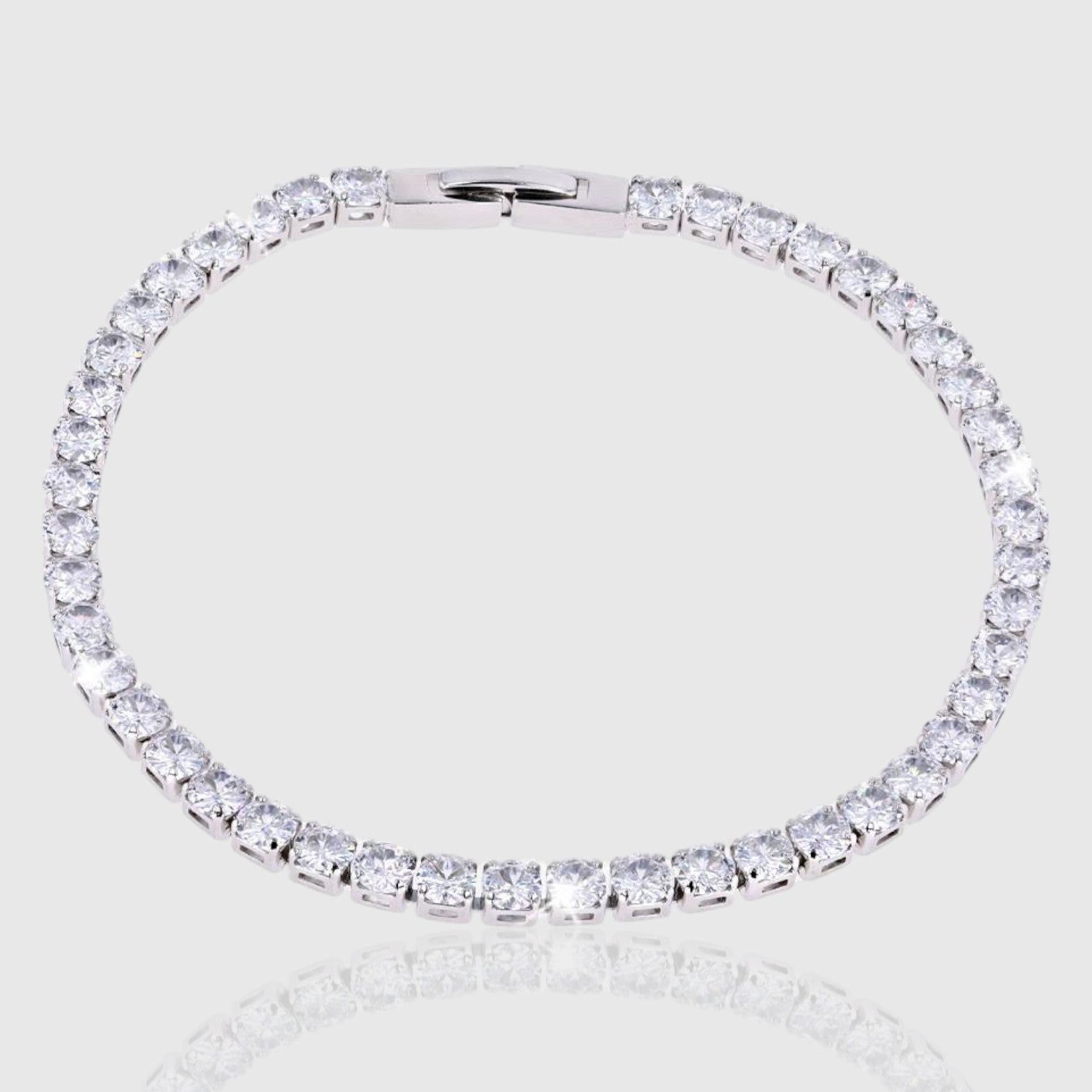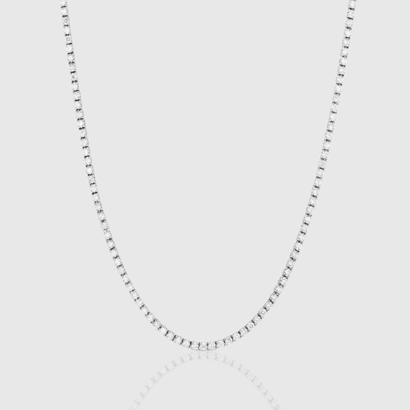 Enhance your style effortlessly with this impeccable set, whether worn alone for a striking statement or layered for added flair. Experience luxury redefined with the 4mm Silver Tennis Chain and Bracelet Set from Gilded.